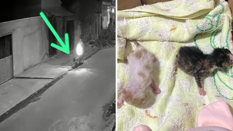 Câmeras de segurança de uma residência flagraram o exato momento em que dois filhotes de gatos foram abandonados no bairro Aeroporto em Tailândia, nordeste do Pará.