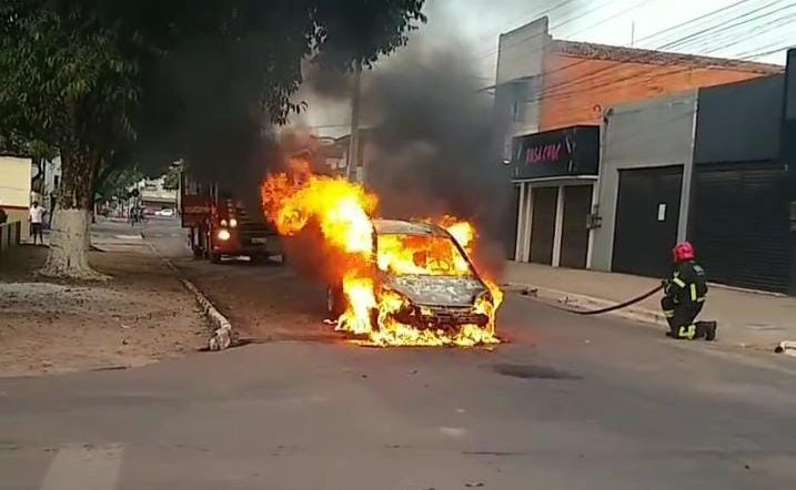 Um carro de passeio pegou fogo na manhã desta quarta-feira (16), no meio da travessa São Félix em Tailândia, nordeste do estado.