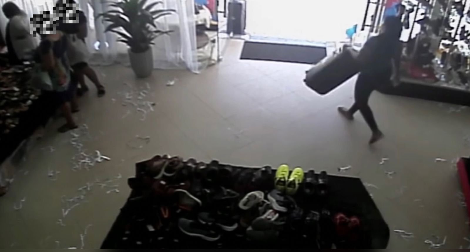 Toda a ação, registrada por câmeras de segurança, aconteceu por volta de 12h30. Três mulheres, entre elas uma idosa e uma grávida, são as suspeitas de participarem do crime.