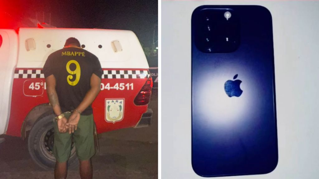 Ao notar a aproximação da viatura, o suspeito tentou fugir a pé, mas foi contido a poucos metros depois. Durante a abordagem, foi encontrado com ele um iPhone 14 Pro Max, de cor preta.
