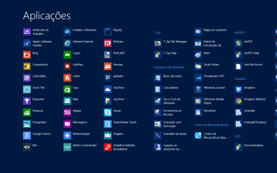 Não tem todas as funcionalidades que o Menu Iniciar nos dava, mas ajuda na hora de aceder às nossa aplicações.